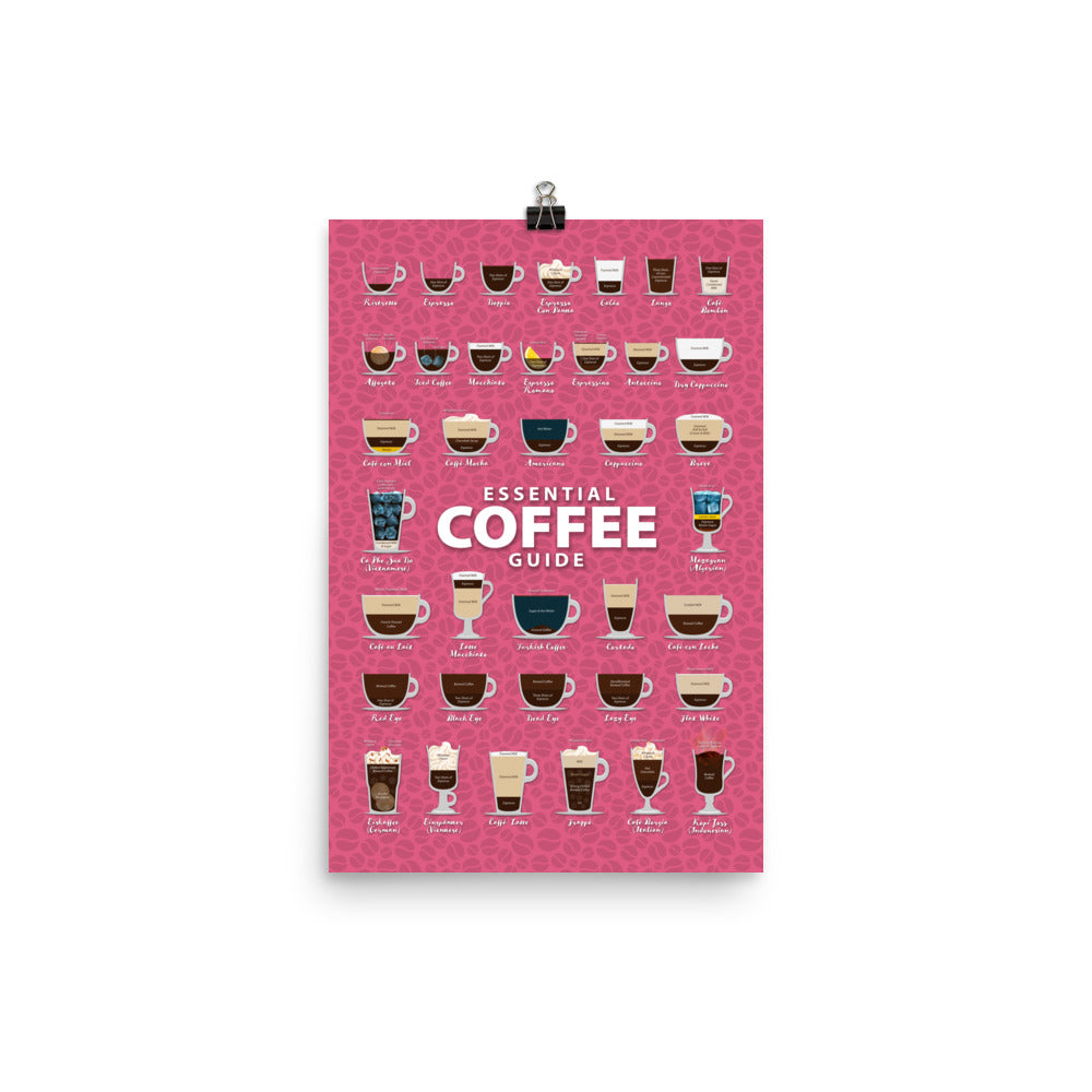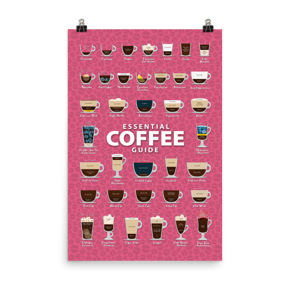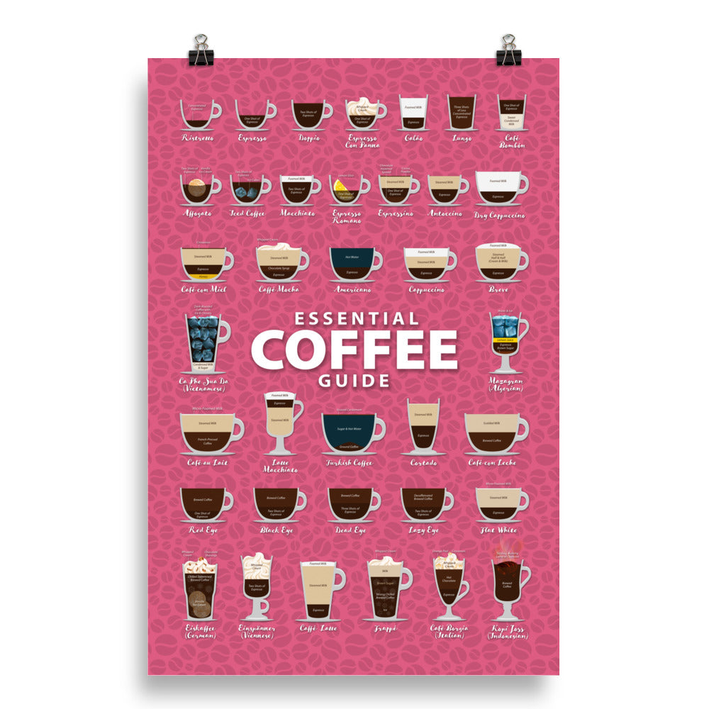 Explore our captivating Types of Coffee poster featuring a vibrant backdrop adorned with luscious coffee beans. Printed on Museum Quality Paper Stock, immerse yourself in the world of coffee with this visually enticing design.