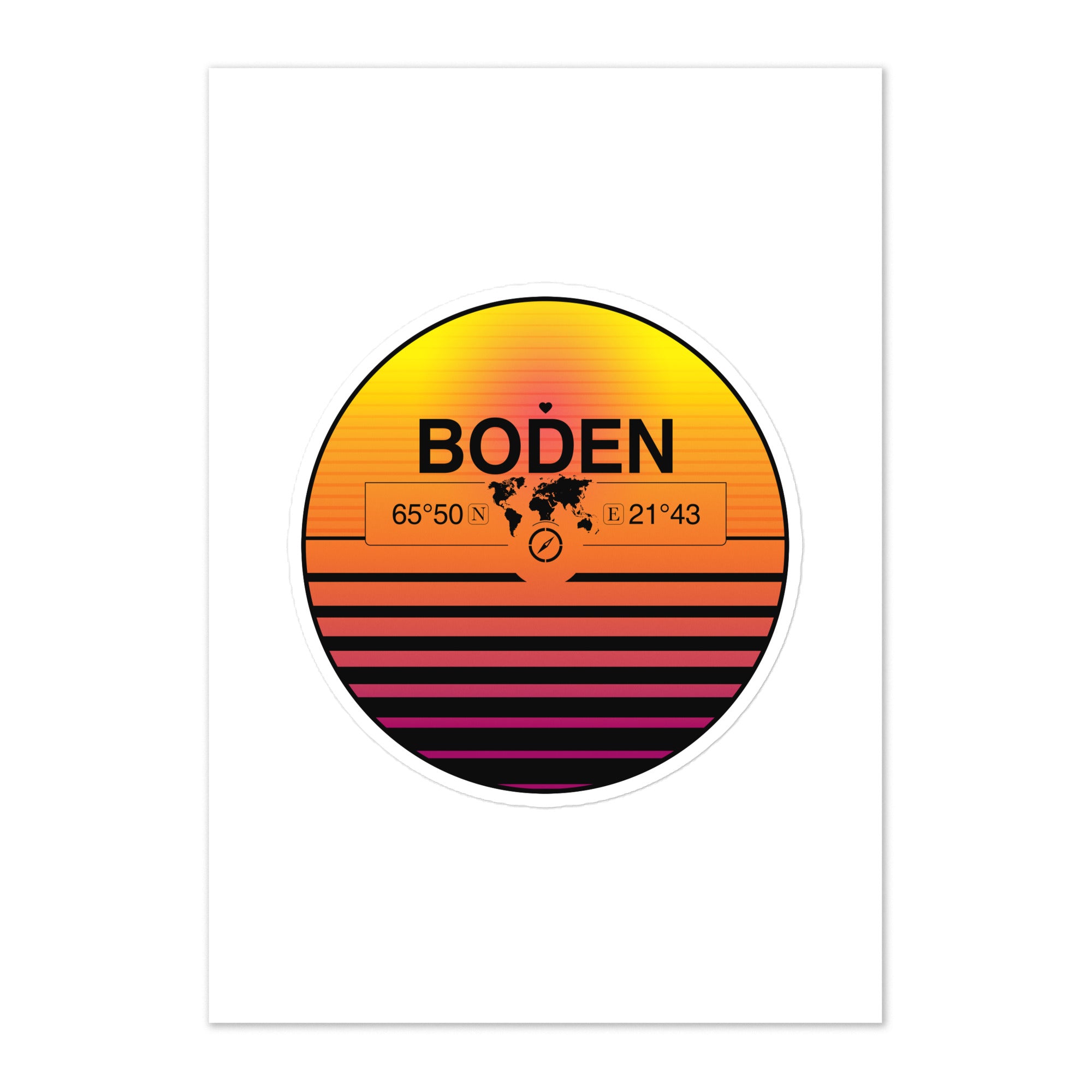 Boden, norrbotten 1x Large 7.5" Kiss-cut Sticker + 4 Smaller Stickers, Pack Sheet
