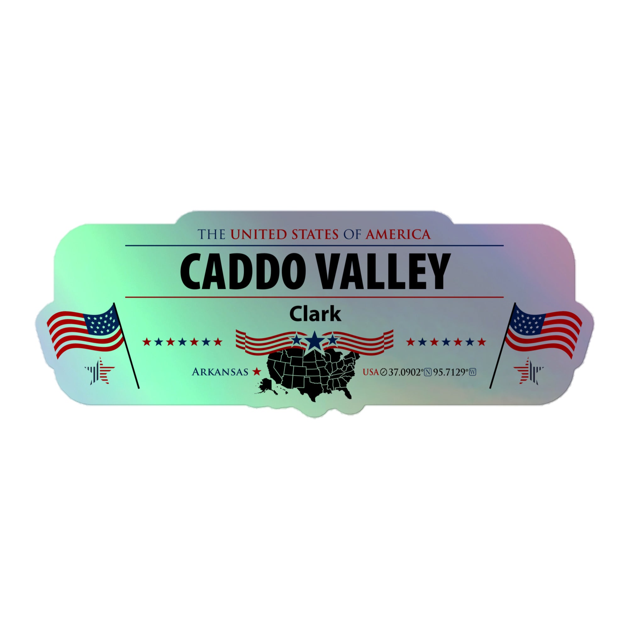 Caddo Valley Arkansas Clark USA Flag, 2 x 5" Holographic Stickers (Twin Pack/Set)