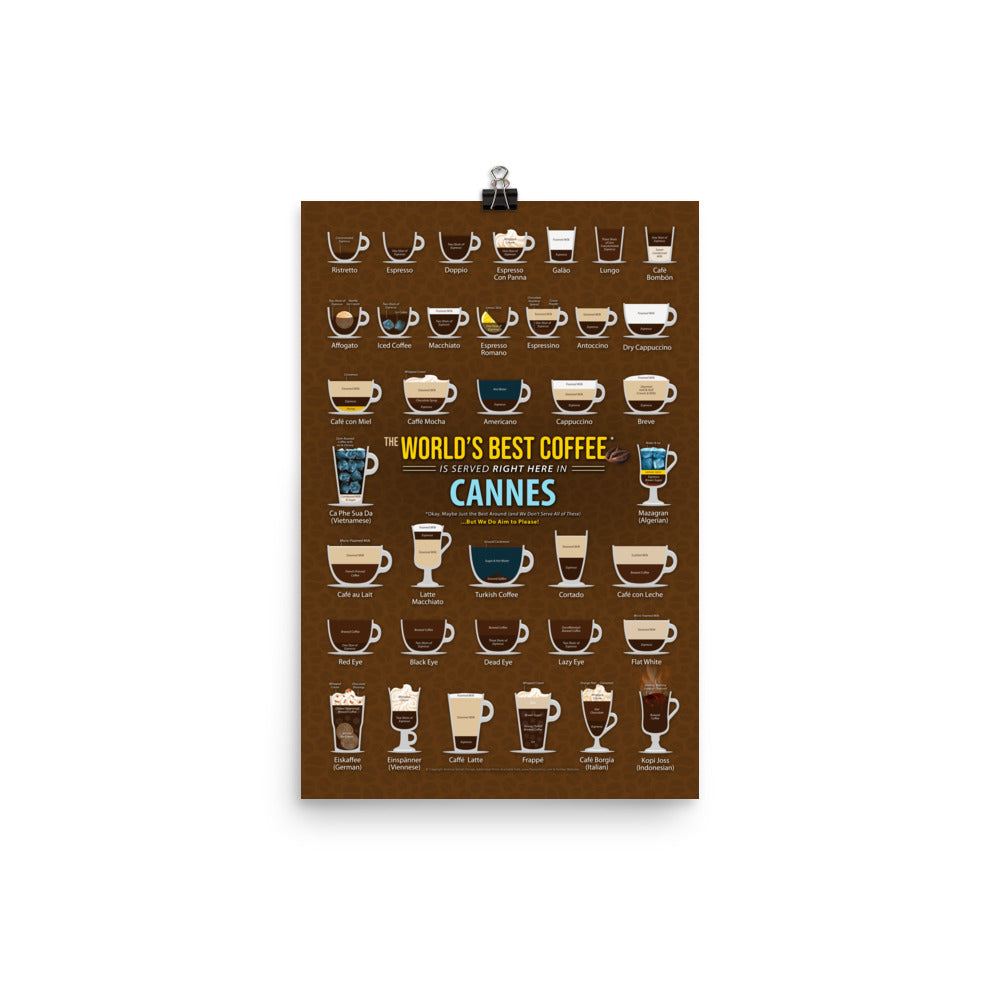 Cannes, Provence-alpes-côte D'azur, France Coffee Types Chart, High-Quality Poster Design