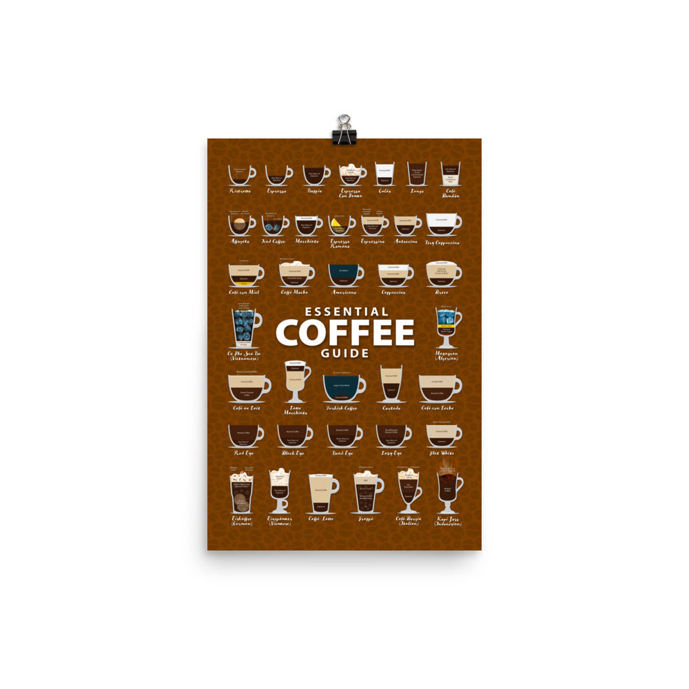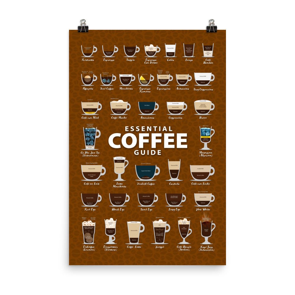 Explore our captivating Types of Coffee poster featuring a vibrant backdrop adorned with luscious coffee beans. Printed on Museum Quality Paper Stock, immerse yourself in the world of coffee with this visually enticing design.