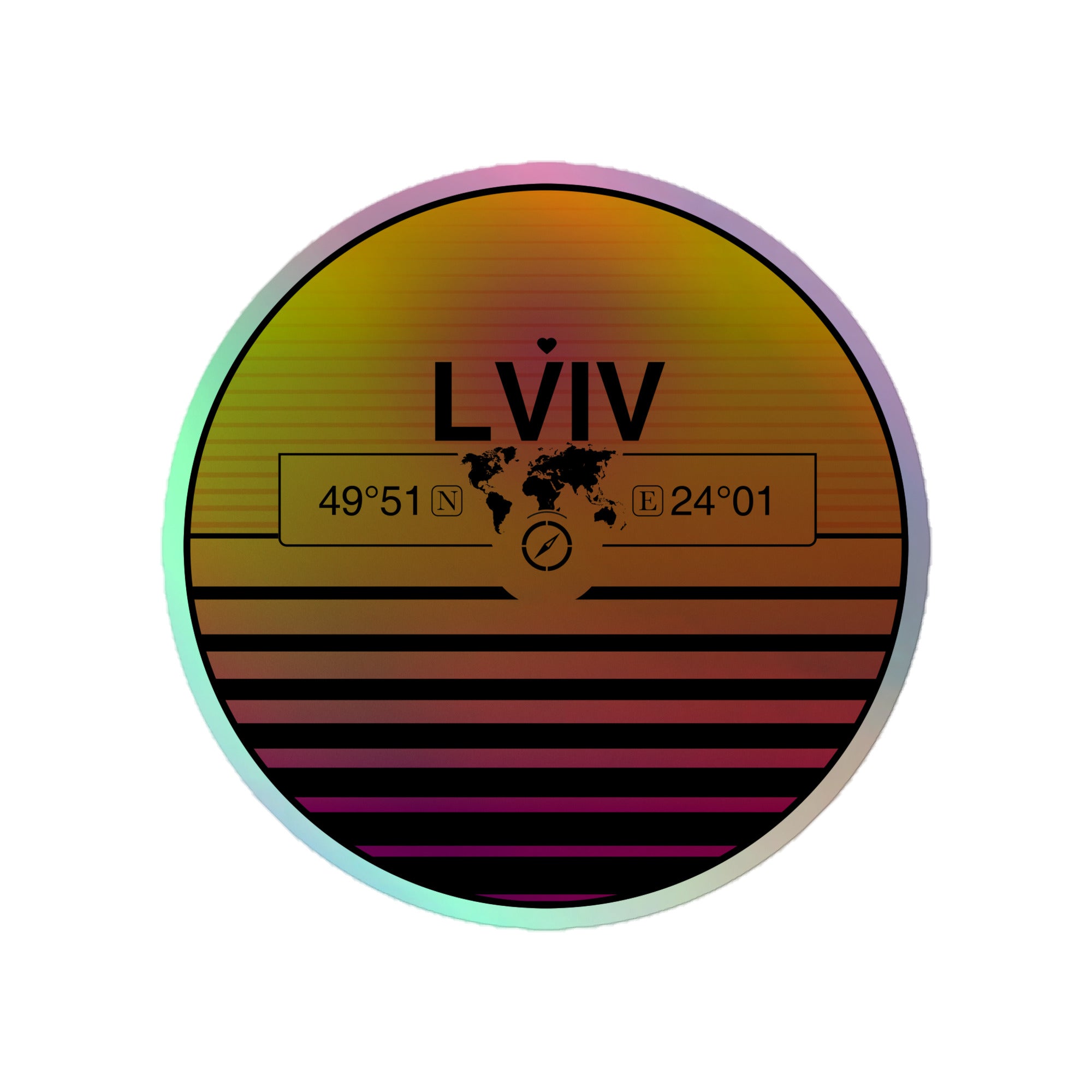 Lviv, Lviv Oblast Quality 5" Inch Holographic Sticker, Retro Sunset