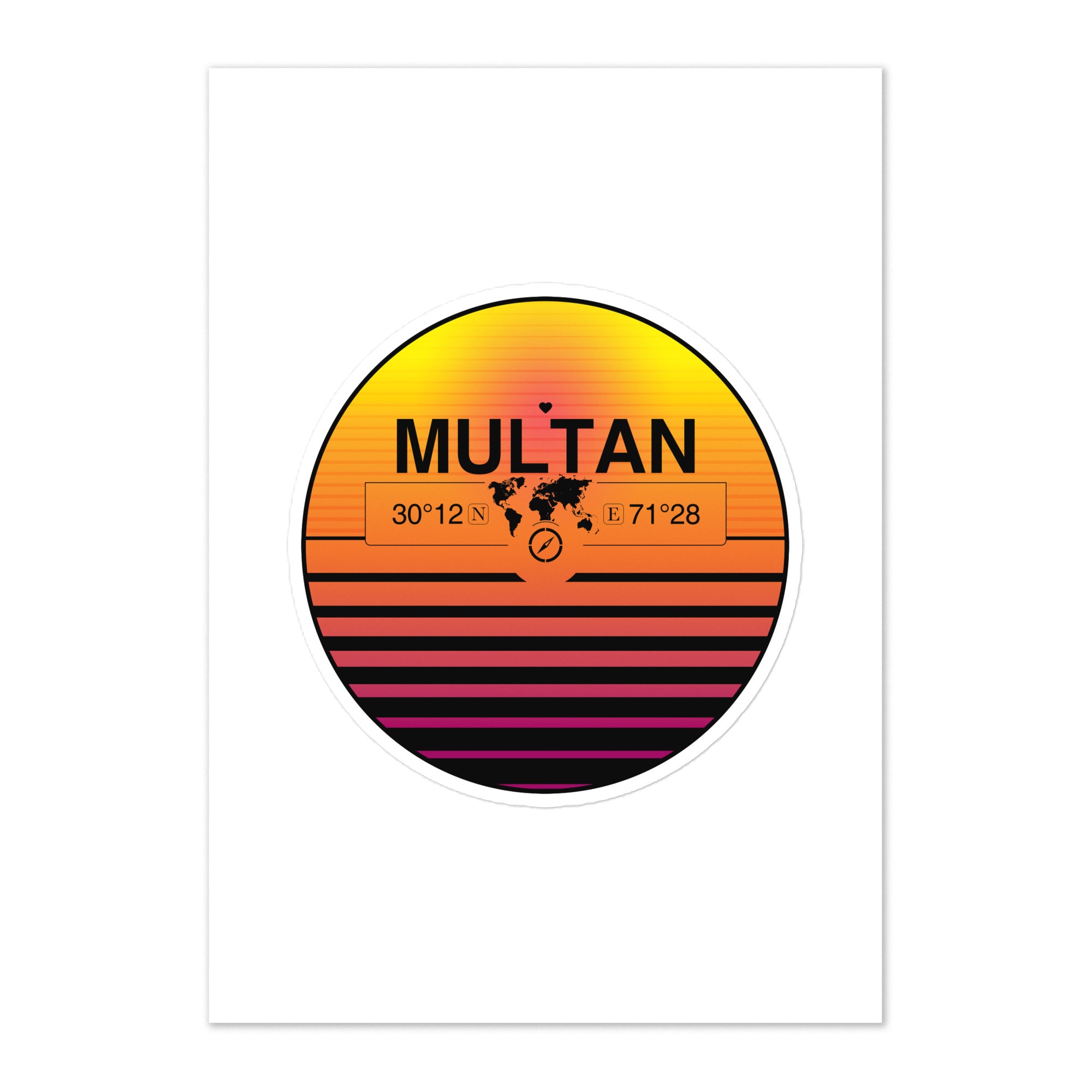 Multan, Punjab 1x Large 7.5" Kiss-cut Sticker + 4 Smaller Stickers, Pack Sheet