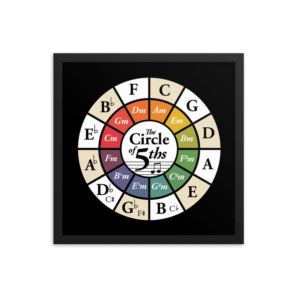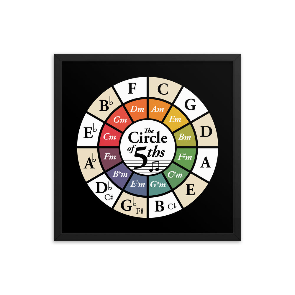 Music Theory Wheel Circle of Fifths Black Framed Chart