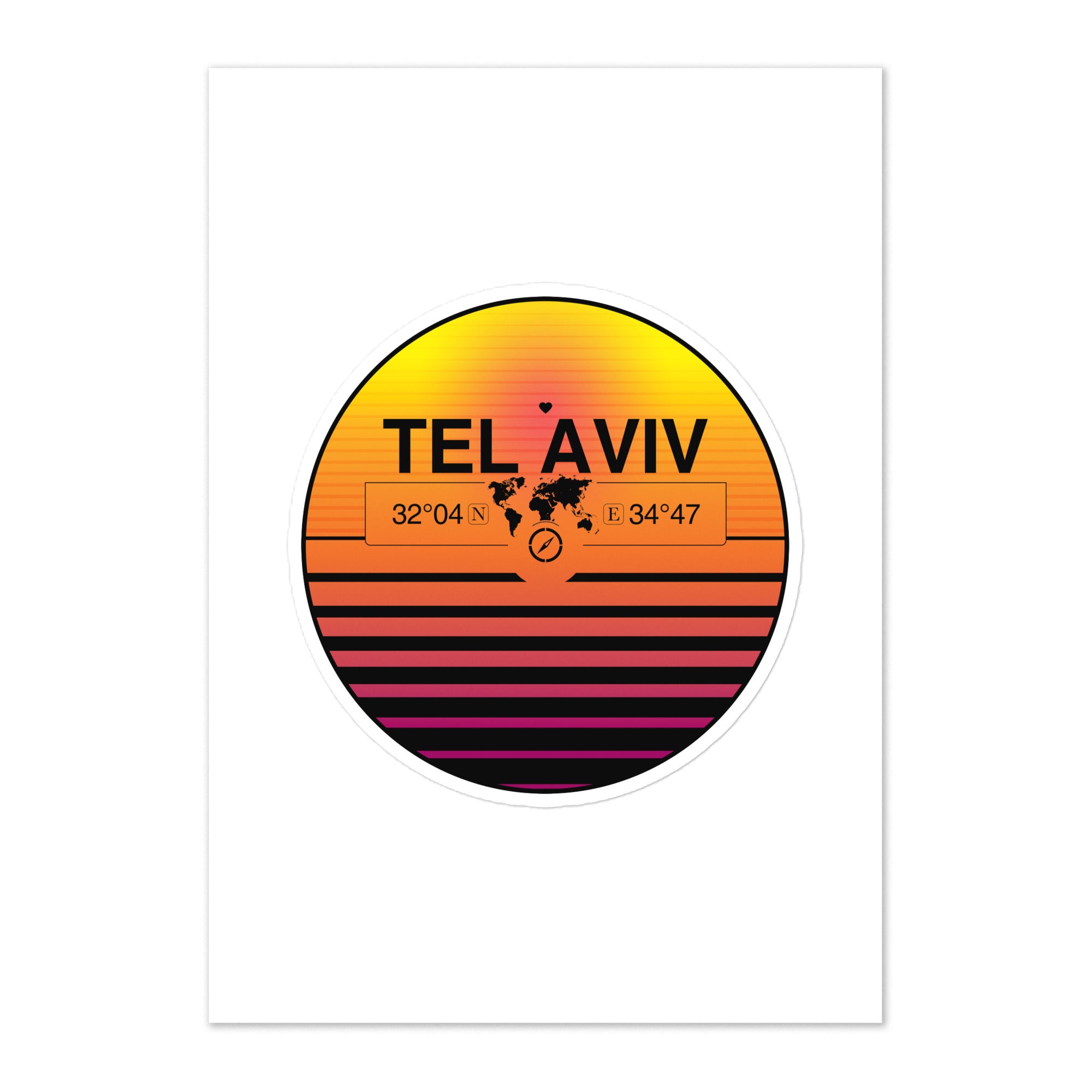 Tel Aviv 1x Large 7.5" Kiss-cut Sticker + 4 Smaller Stickers, Pack Sheet